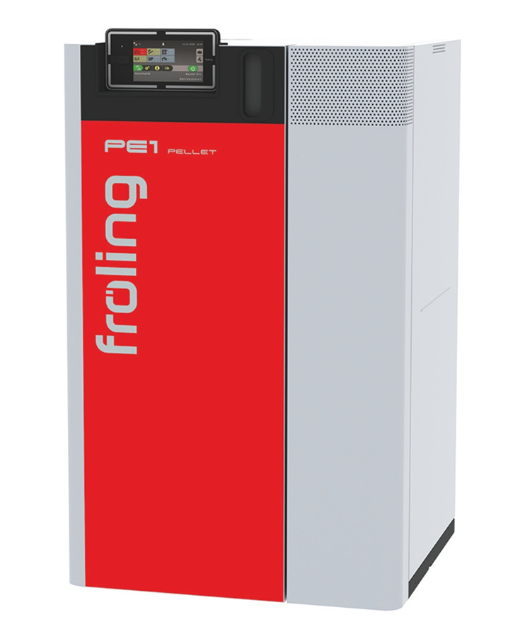 The Fröling PE1 is a fully automatic wood pellet boiler that can run for over a month with minimal user input. It modulates to meet heating demand, uses very little power, and features a long-lasting hot surface igniter.